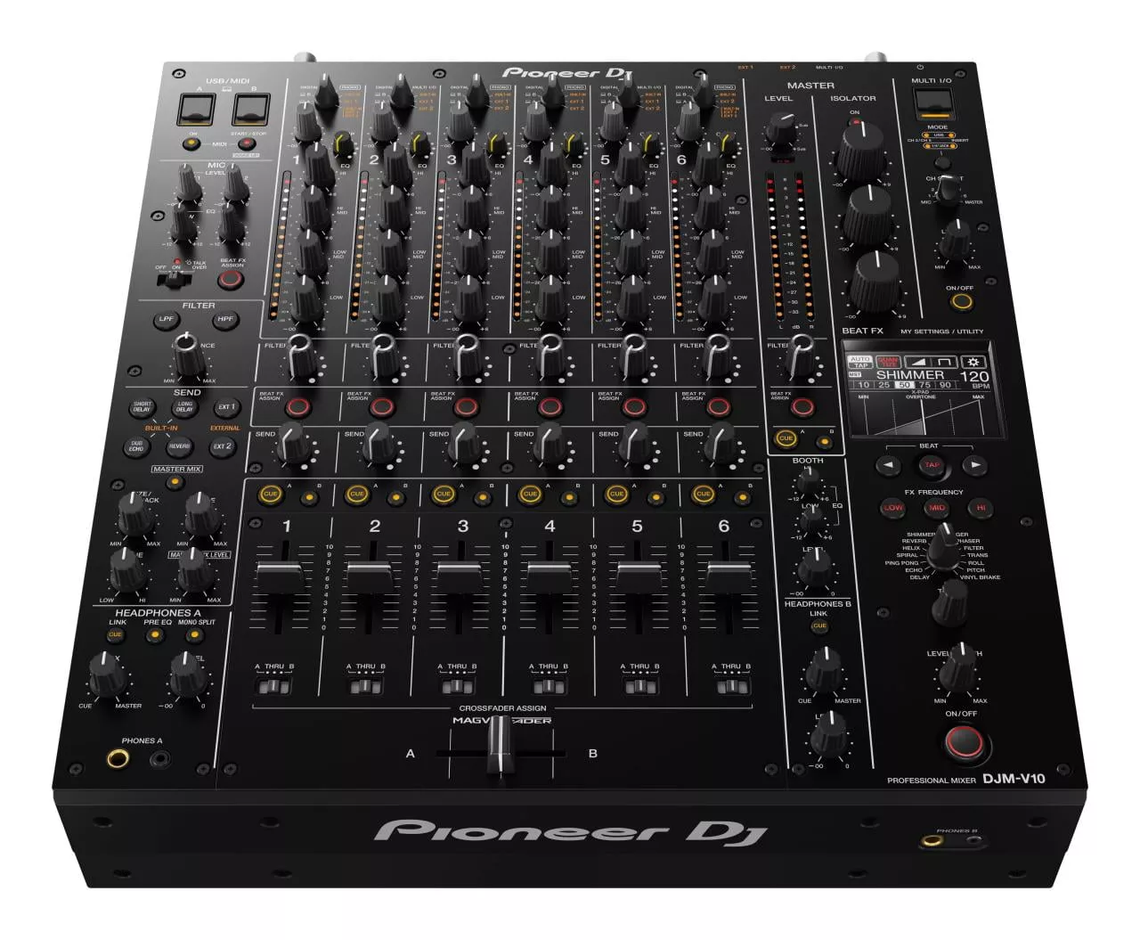 Диджейский микшер Pioneer DJM-V10 с шестью каналами, созданный таким образом, чтобы новый sound maisemoiden мог использовать несколько различных источников звука. Впервые диджейские микшеры Pioneer 4-alueisen equalizer объединены вместе, предлагая точный контроль над музыкой различных элементов. Регулировка эквалайзера кривых тщательно подобрана, чтобы гарантировать полное отсутствие частот верхнего и нижнего диапазонов и достижение необходимой резкости в центральной области настроек. Канальные фейдеры action ощущаются пальцами как удобные, подчеркнуто подходящие и бархатисто мягкие, так что быстрое переключение из одной крайности в другую, а также миллиметр под капотом, надежно осуществимы. Встроенные блоки эффектов позволяют вам придавать миксу новые размеры и глубину, а подключение "Передача / возврат в конец" также позволяет использовать, скажем, гитарные педали. Используя музыку из цифровых или аналоговых источников, DJM-V10 создает звук неизменно высокого качества благодаря 64-разрядному цифровому сигнальному процессору и 32-разрядному преобразованию ESS SABRE A / D-D/ A с помощью.