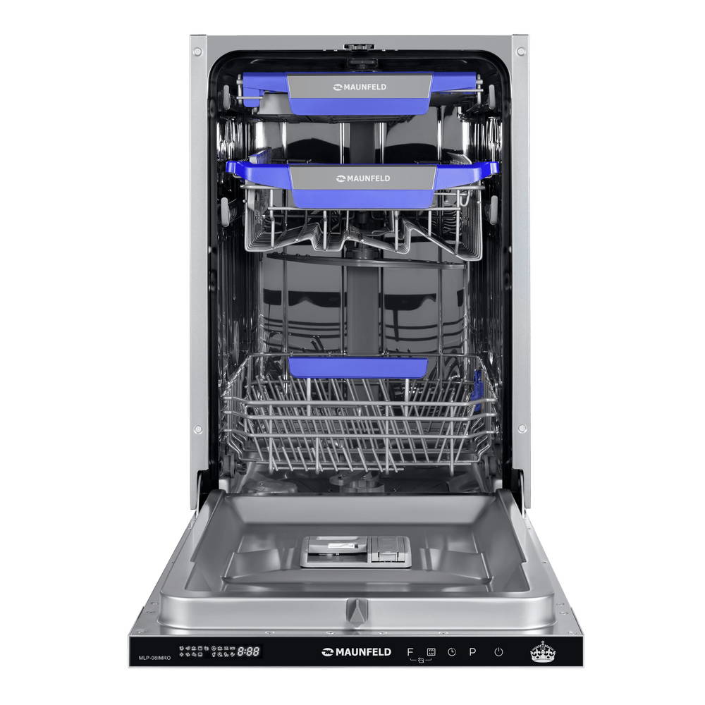 Узкая встраиваемая посудомоечная машина MAUNFELD MLP-08IMRO создана для кухонь, где важен каждый сантиметр, но не хочется жертвовать удобством. При ширине 45 см она бережно отмывает 10 комплектов, экономя место и ваше время.