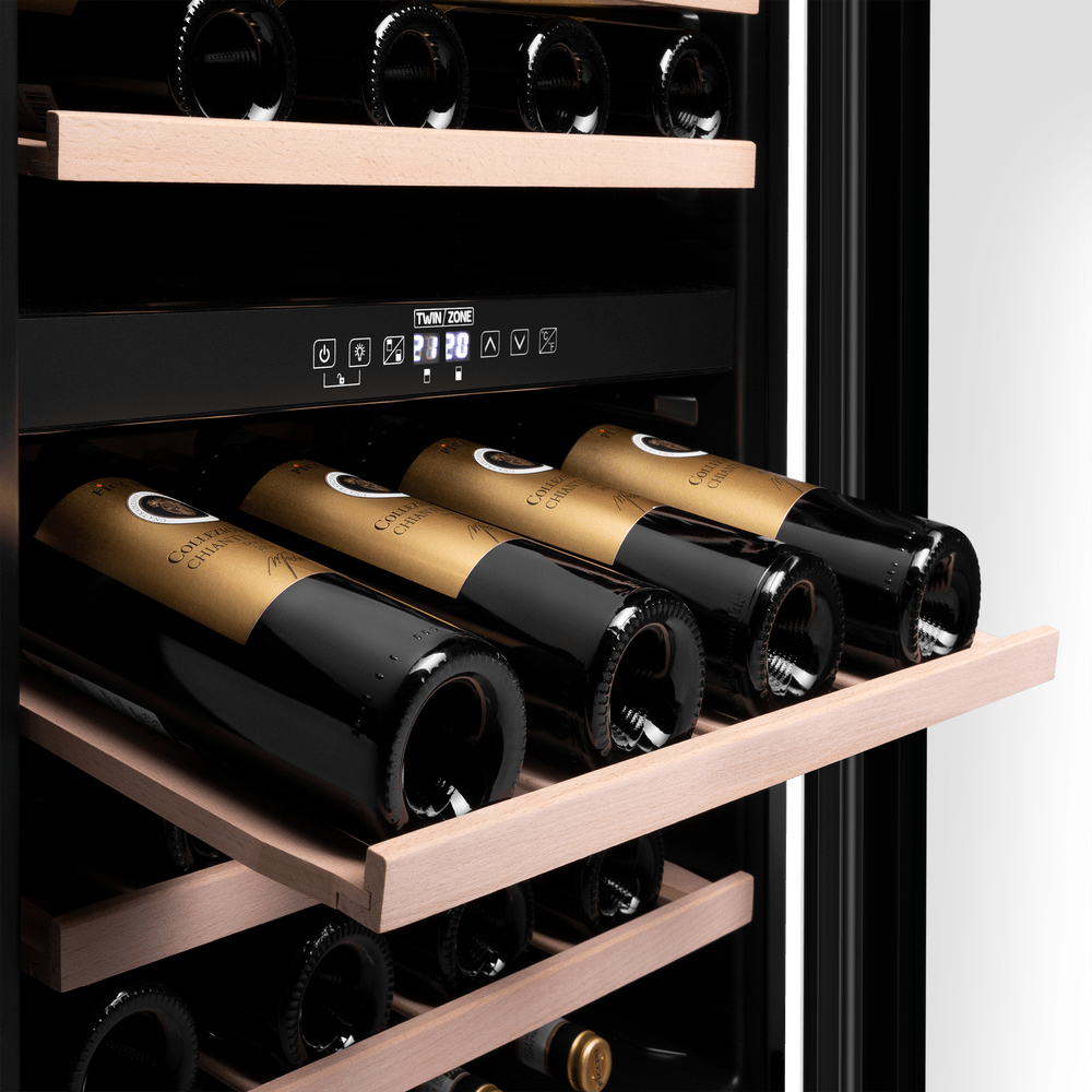 Модель вмещает до 77 бутылок и поддерживает широкий температурный диапазон от 5 °C до 22 °C. Это позволяет хранить красные, белые и игристые вина в оптимальных условиях, обеспечивая их правильное созревание и сохранение вкуса.
