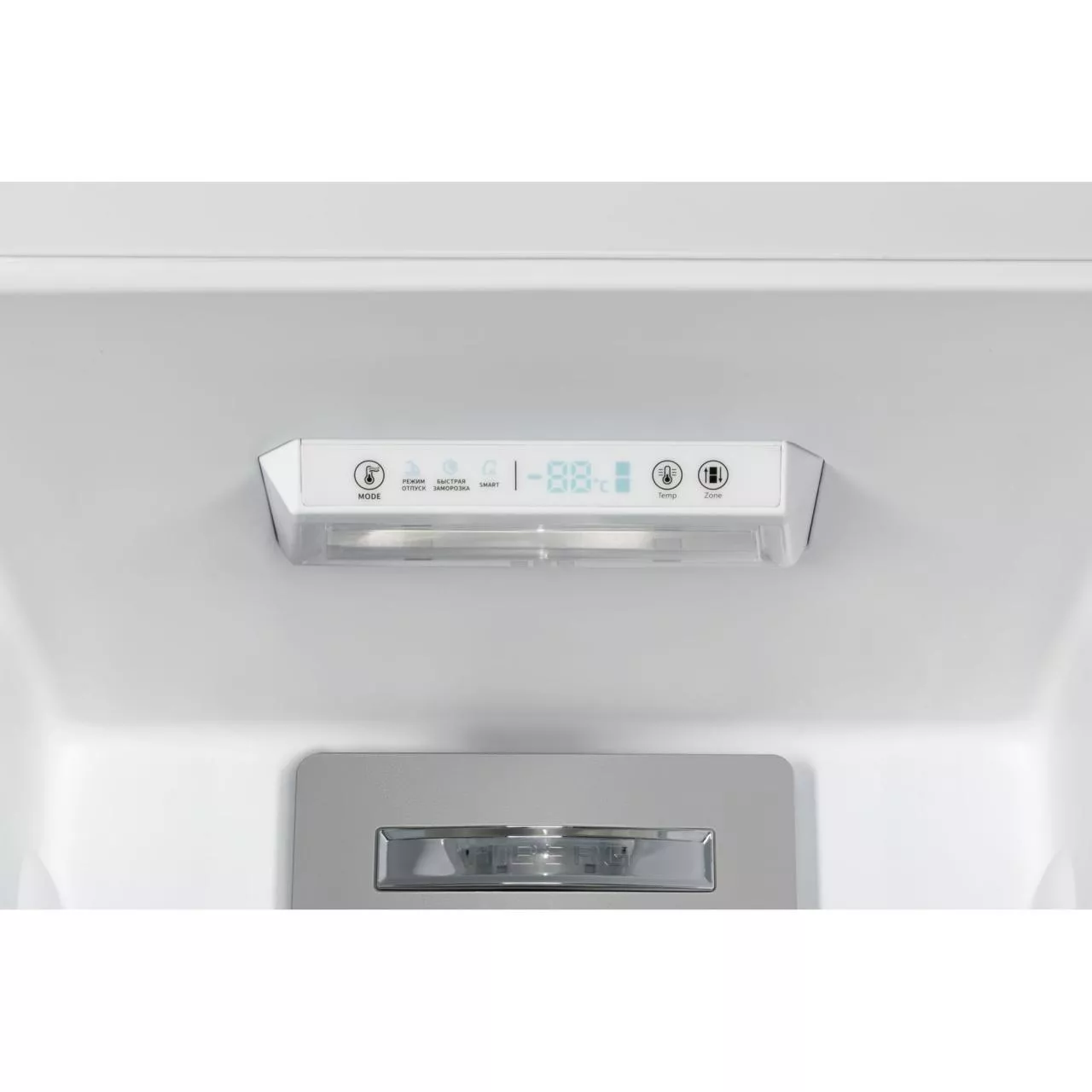 Прибор оснащен электронной панелью управления, расположенной внутри холодильной камеры. Легким нажатием на сенсорные кнопки можно регулировать температуру или выбирать необходимый режим работы.
